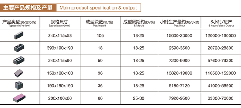 用途:生產(chǎn)各種外墻砌塊、內(nèi)墻砌塊、花墻砌塊、樓板塊、護(hù)堤塊、連鎖塊、路緣石等砌塊。增加面料裝置可生產(chǎn)彩色路面磚。